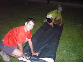 En Loarre, nos instalamos en el camping y alquilamos una tienda de campaña (en bastantes malas condiciones). Como el aire sopla fuerte y el sobretoldo no cuadra con el resto de la tienda, es imposible de montar. Así que decidimos recogerla y dormir en el local social del camping. En el bar nos aprovisionamos de nuevo, aunque no hay mucha variedad.
